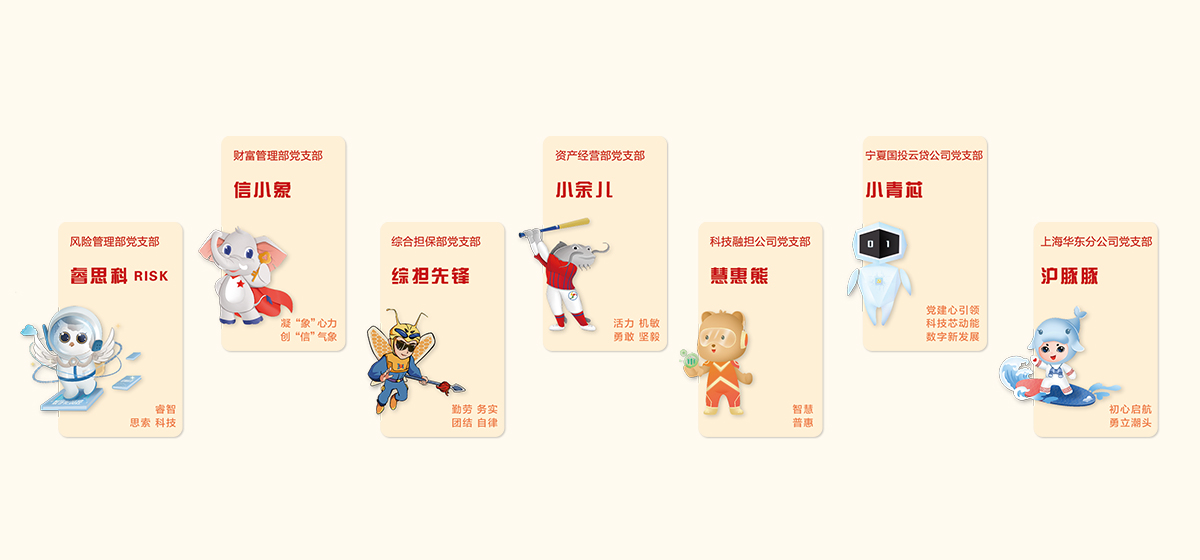 中國投融資擔(dān)保有限公司是一家專業(yè)從事?lián)7?wù)的公司,其黨建部門為加強部門文化建設(shè),打造品牌形象,委托啟止設(shè)計為其提供IP形象設(shè)計服務(wù)。