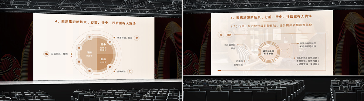 啟止設計為此次大會設計宣講PPT,以現在比較主流的2.5D插畫設計風格,結合“新時代零售”的概念,將概念化的文字場景化,使大會上受眾看的時候更直觀。