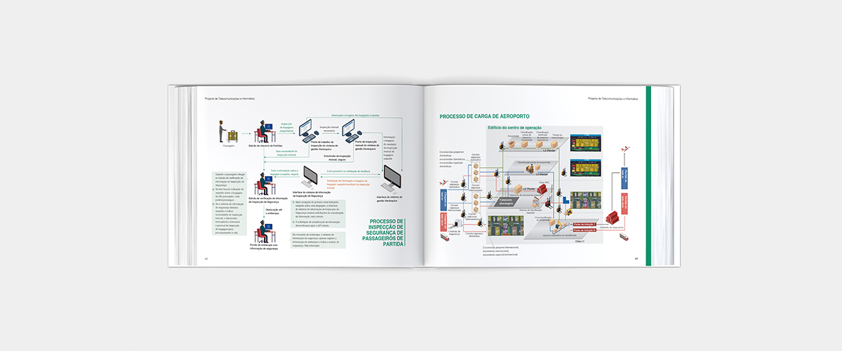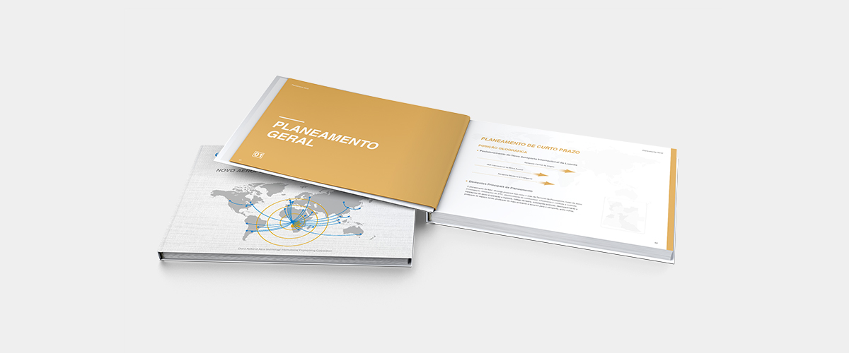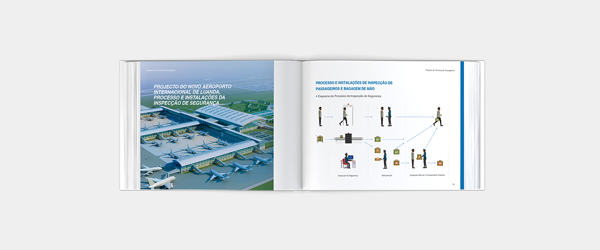 我們承接了中航凱迪恩集團為“機場規劃設計概要”進行設計排版制作的任務,此案最終制作的成品將為安哥拉總統等政要進行匯報。客戶給設計和制作的時間十份緊迫,而且嚴謹性,政治性,重要等級別都比較高。內文排版使用葡萄牙文,圖片較多為邏輯圖和施工圖。