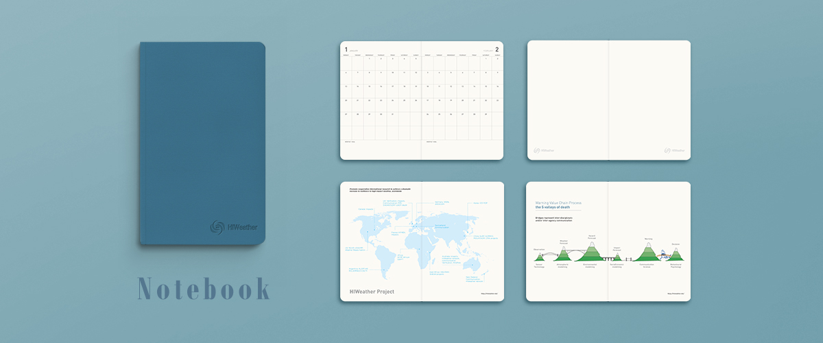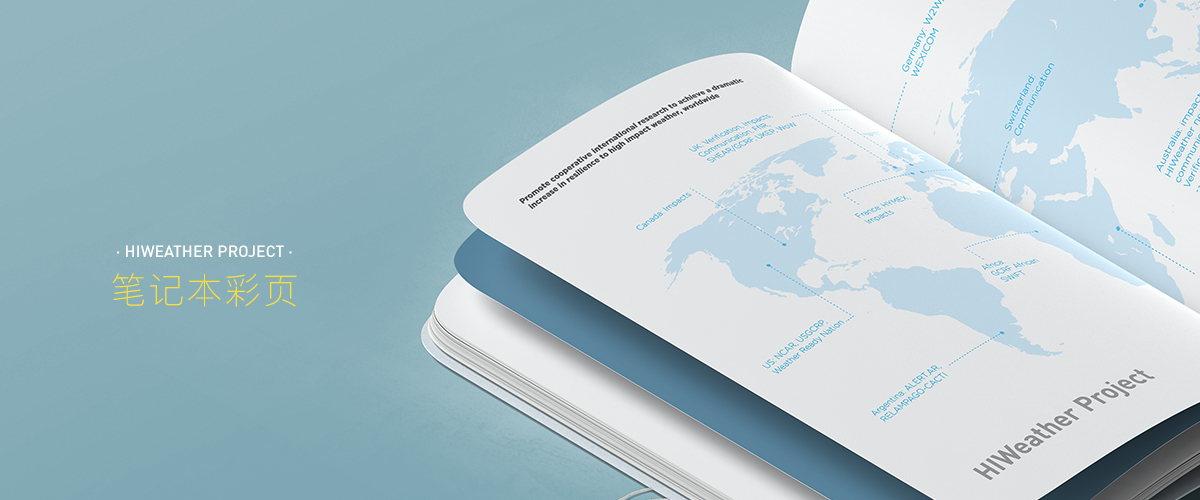 因此,WMO世界天氣研究計劃啟動了一項為期10年的國際研究項目,即高影響天氣研究項目(HIWeather),啟止設計承接此項目所有相關物料設計,以下為會議專用筆記本設計。