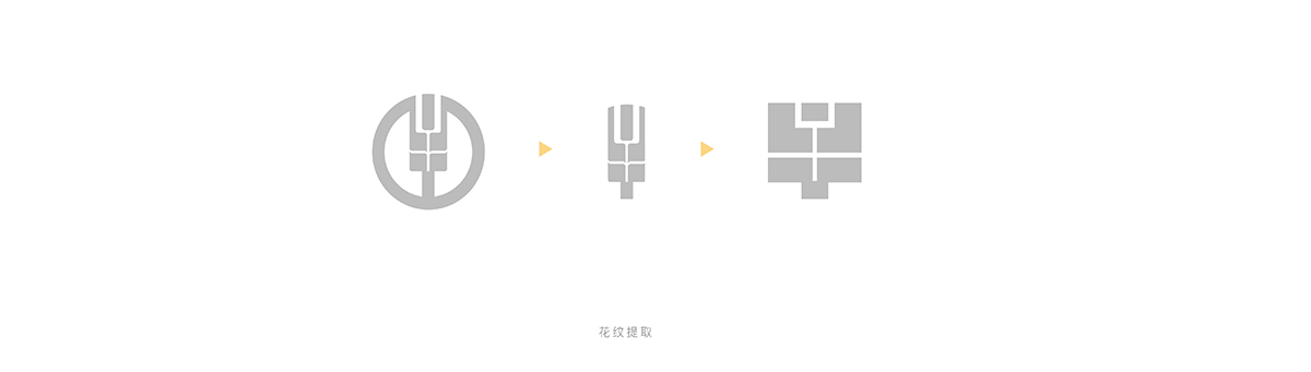 元素提取方式,麥穗的幾何轉(zhuǎn)換形式,保留了基礎(chǔ)組織形式,去除具象化的形態(tài)更扁平化。