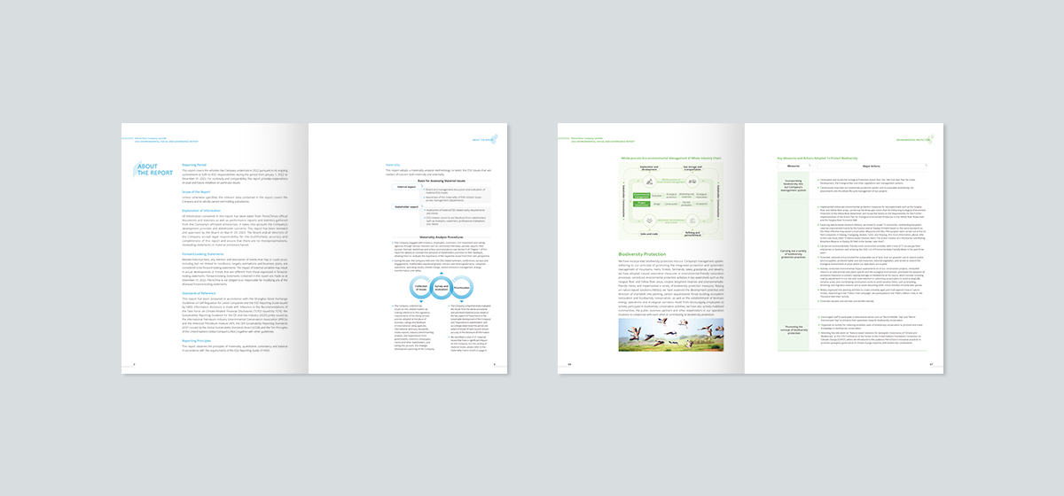啟止設(shè)計(jì)完成ESG報(bào)告三個(gè)版本的設(shè)計(jì)工作。本項(xiàng)目中嚴(yán)謹(jǐn)?shù)膱?bào)告文案,在保密原則的前提下,更重視文字的嚴(yán)謹(jǐn)和準(zhǔn)確。